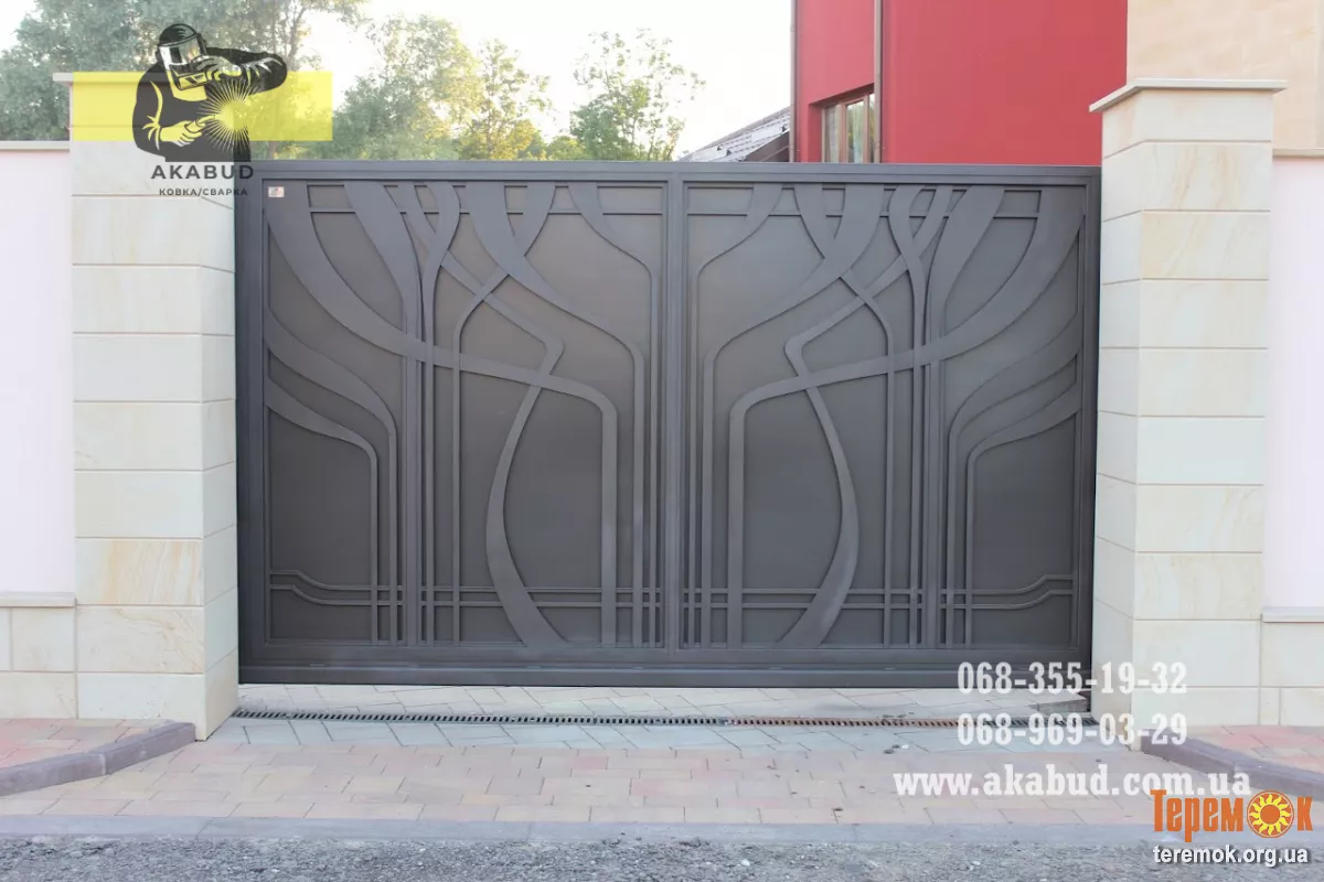 Металлические ворота: Прочные и долговечные, могут быть как коваными, так и сварными, с различными элементами декора.