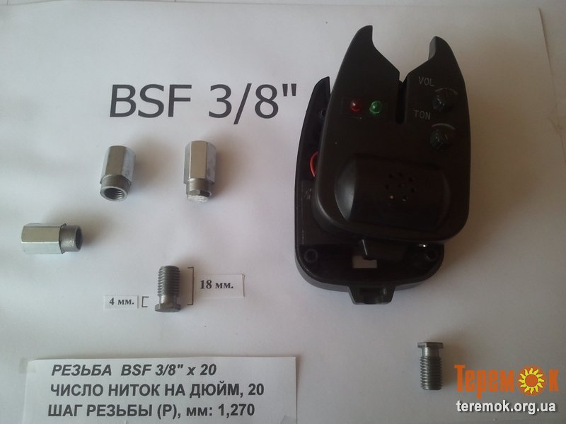 Резьба нарезана в соответствии европейским стандартам (диаметром и шагом резьбы), именно тот стандарт, который используется на всех производителях сигнализаторов поклевки и рогачей.