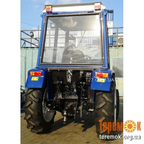 Комфортабельная кабина со звуко- и теплоизоляцией обладает хорошей круговой обзорностью. Высокая степень остекления и наличие внизу кабины трактора смотровых окон позволяет уверенно контролировать рабочий процесс. Стекла – триплекс. Система отопления - от охлаждающей жидкости двигателя. Правые боковые и задние стекла оснащены защитной металлической сеткой. Обшивка задней части трактора.