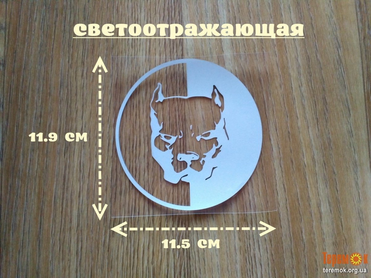 Наклейка на авто или мото Питбуль Белая светоотражающая