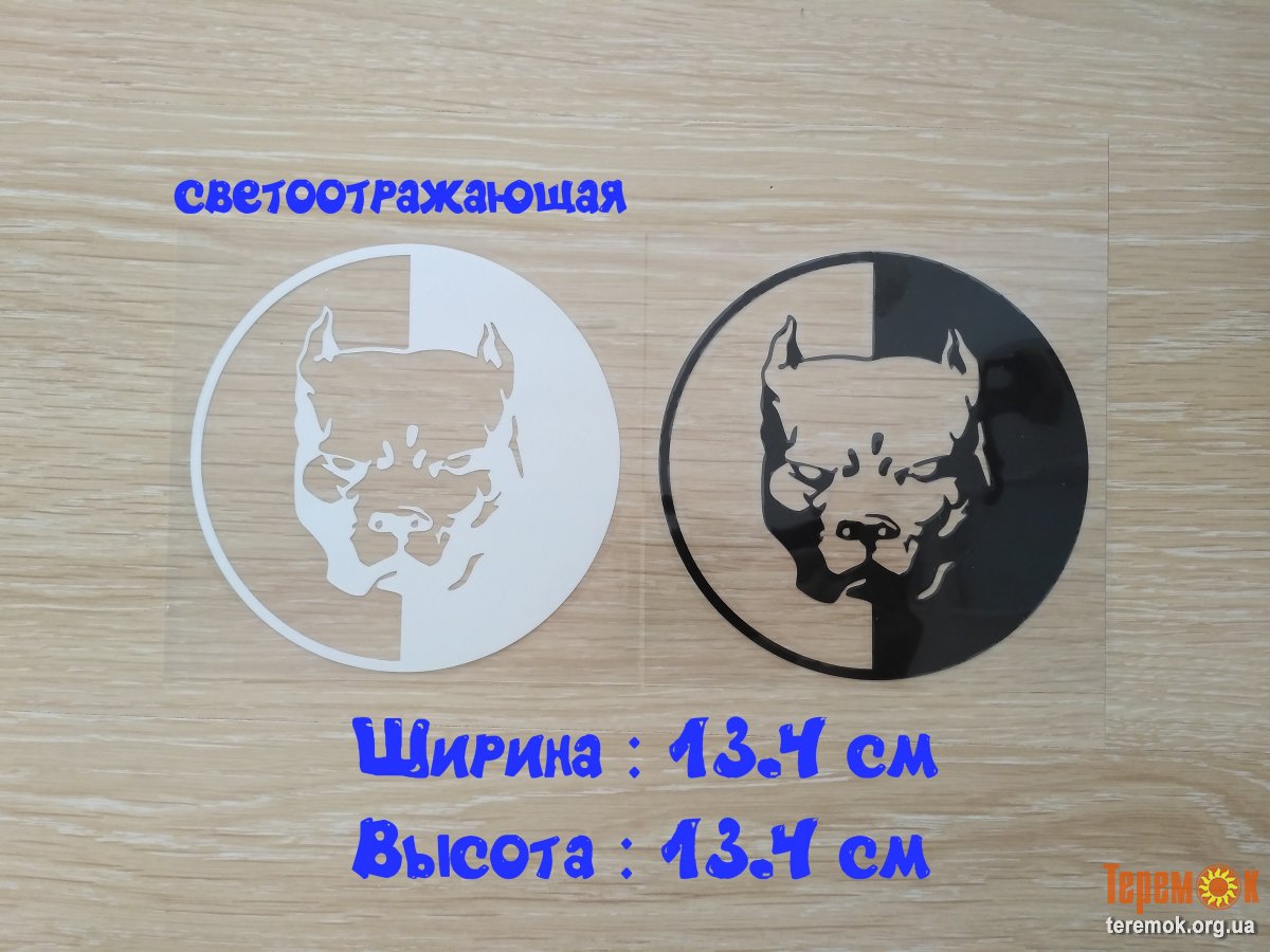 Наклейка на авто Питбуль Большая Белая светоотражающая .Чёрная
