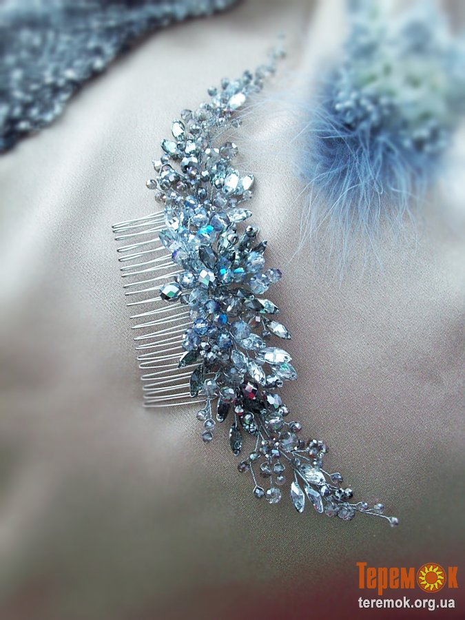 Серебристая туманность′, большой гребеньветочка, украшение в праздничную прическу .