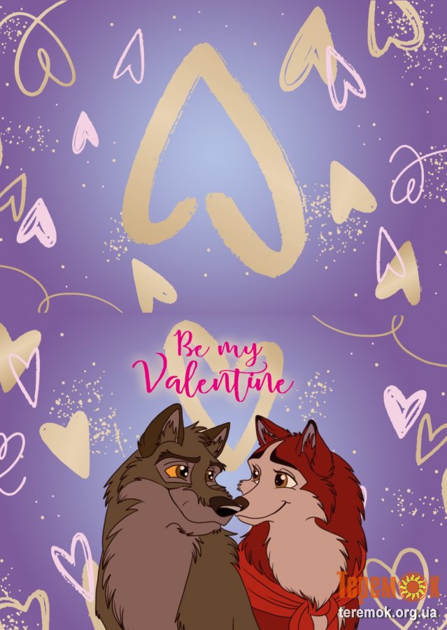 У продажу листівки до дня святого Валентина за мульфільмом "Балто". Листівки нові, яскраві й приємні на дотик.