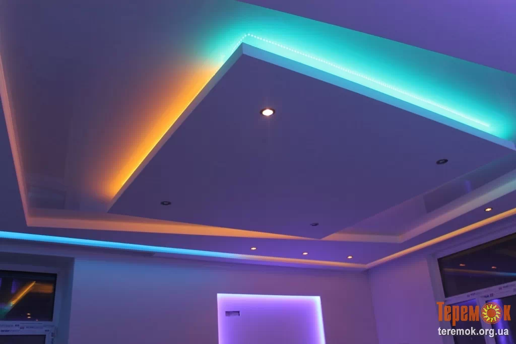 Багаторівнева стеля, з нішею під штори, «левітуюча» стеля, тіньова, з фотодруком і навіть зоряним небом!