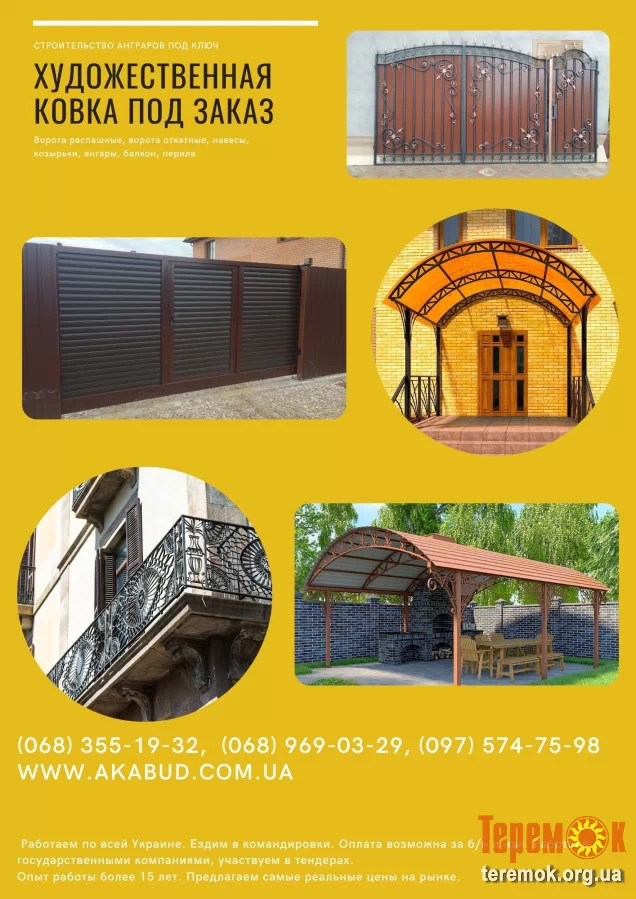 4. Ковані огорожі. Зварні огорожі. Ковані ґрати. Зварні грати. Козирки для дому та офісу. Ворота із профнастилу з куванням. Ворота ковані. Поруччя для балкона (огорожі балкона). Ворота відкатні