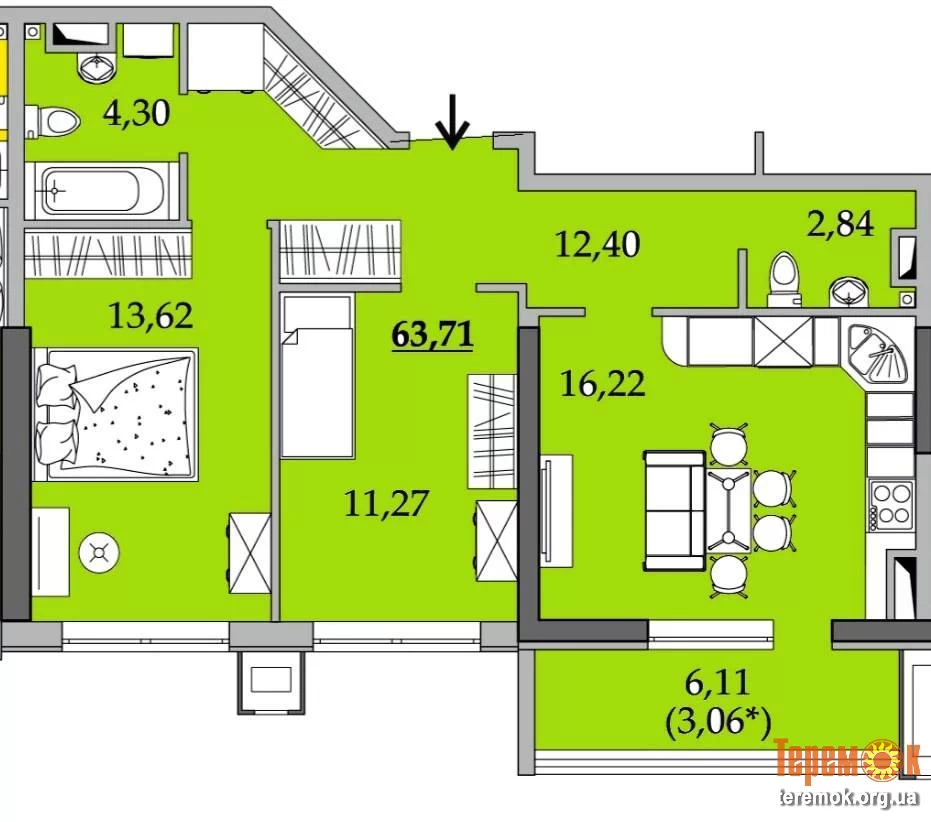 - Загальна площа, м.кв.: 64