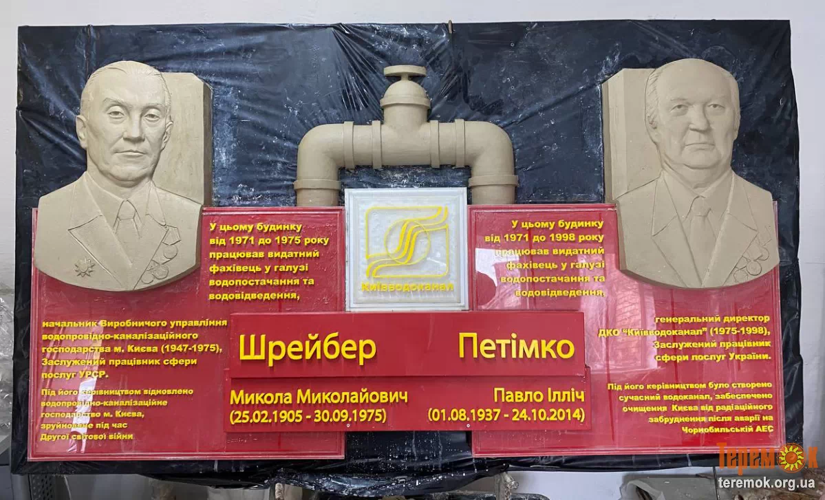 На фасаде административного здания Киевводоканала была установлена мемориальная доска в честь известных украинских специалистов в сфере строительства водоснабжающих коммуникаций Николая Шрейбера и Павла Петимко.