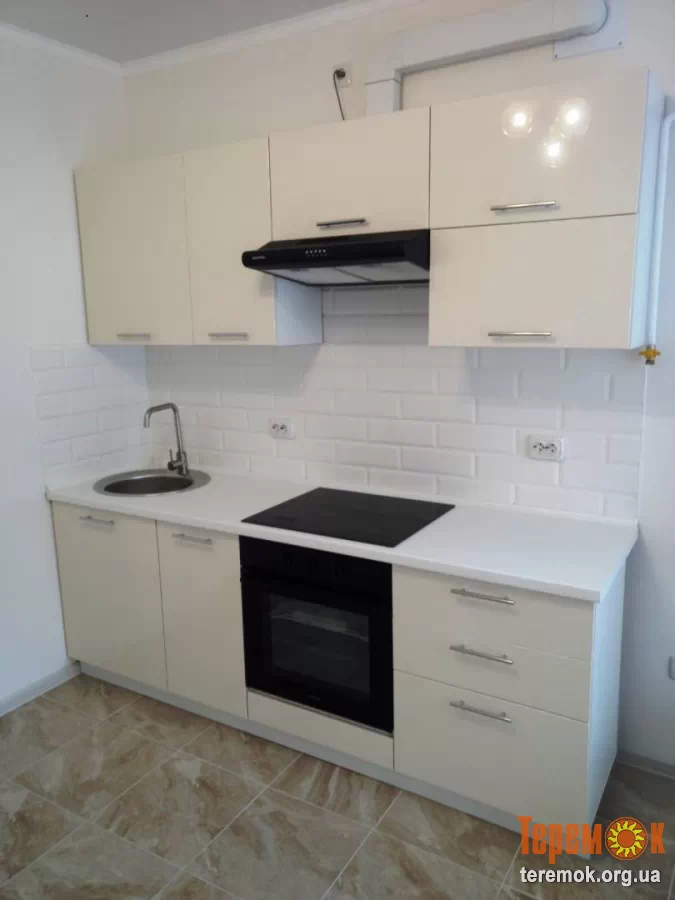 Вбудована кухня. Підлога-ламінат плитка.