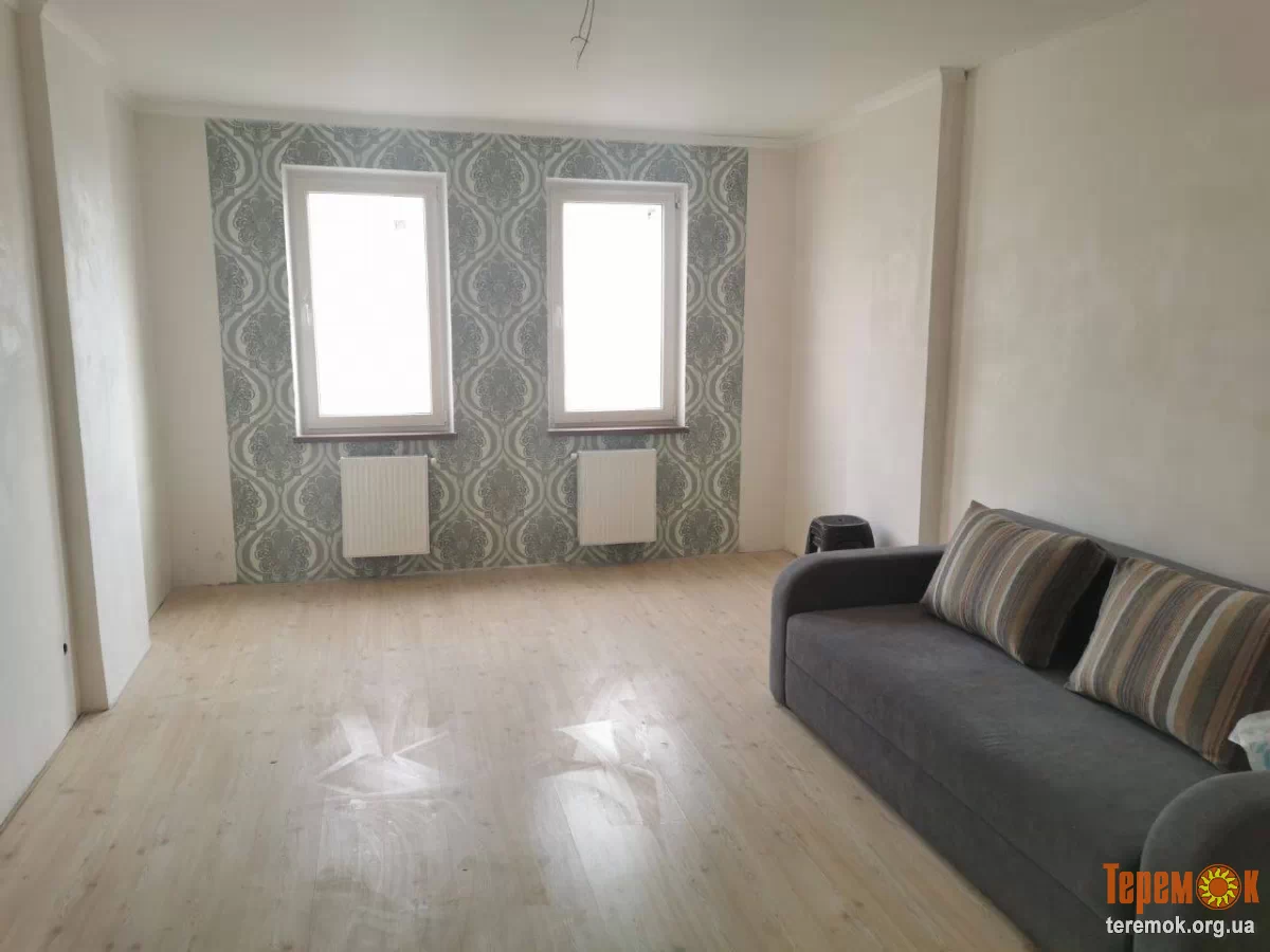 У квартирі на 80% здійснено ремонт. Загальна площа 103,8 м2. Розташована на 11 поверсі. Закінчено всі чернові роботи. Капітально зроблено 1 кімнату та санвузол, так що можна відразу заїхати і жити поступово доробляючи ремонт повністю на свій смак.