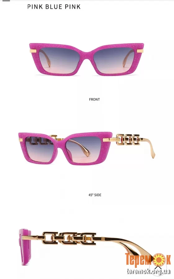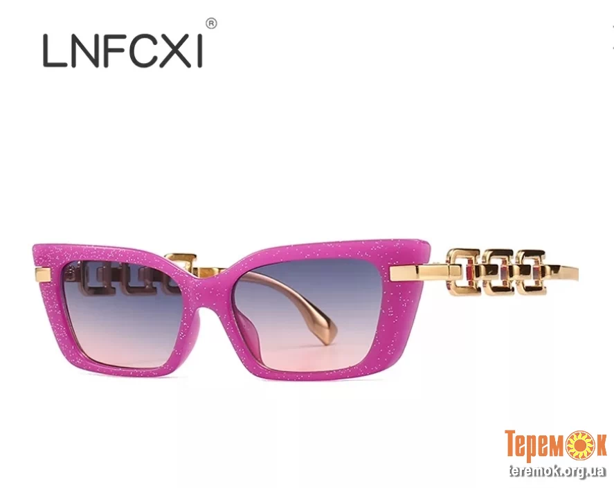Стильні, розкішні, яскраві, брендові сонцезахисні окуляри з градієнтом та захистом очей UV 400, з оригінальними золотистими дужками у вигляді ланцюга. Нові. Ціна 289 грн.