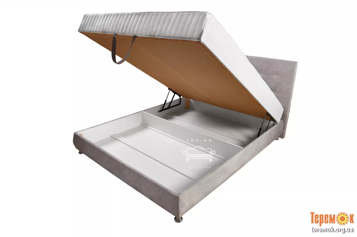 Підйомна основа з газовими упорами дозволить з легкістю піднімати і опускати спальне місце, даючи можливість використовувати відсік для зберігання ваших речей.