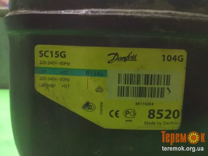 Герметичний поршньовий компресор Danfoss SC15G (104G8520). Масло в компресорі чисте, можливо зробити відео роботи.