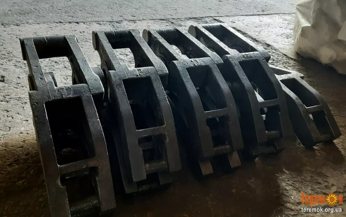 Ланки, колосники, паток, обойма, маточина, кронштейн, боковина, вінець, втулка колектора, зірочка, зубчастий вінець, колесо, колесо зубчасте, колодка гальмівна, конус натискний, муфта, скребок, хвостовик, диск напірний, диск сошника, цеглоутримувач, кільце розпірне, кришка підшипника, крила напівмуфти, плита розпірна, напівкришка, противага, тигель і т.д.