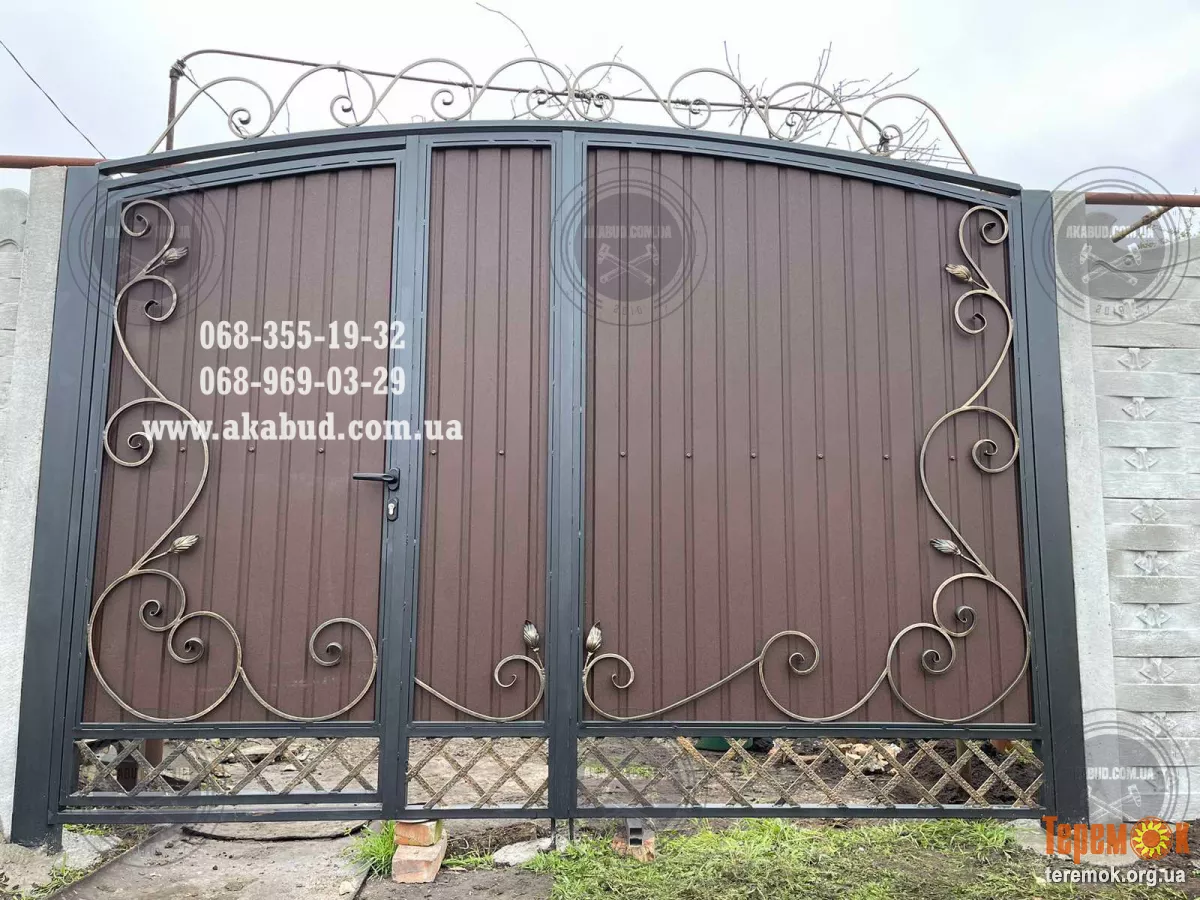 Мы компания Акабуд специализирующуюся на производстве и установке распашных ворот из профлиста с элементами ковки и бетонным забором!