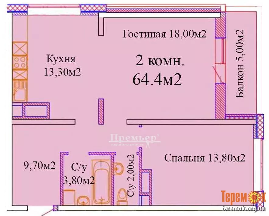 - Загальна площа, м.кв.: 65