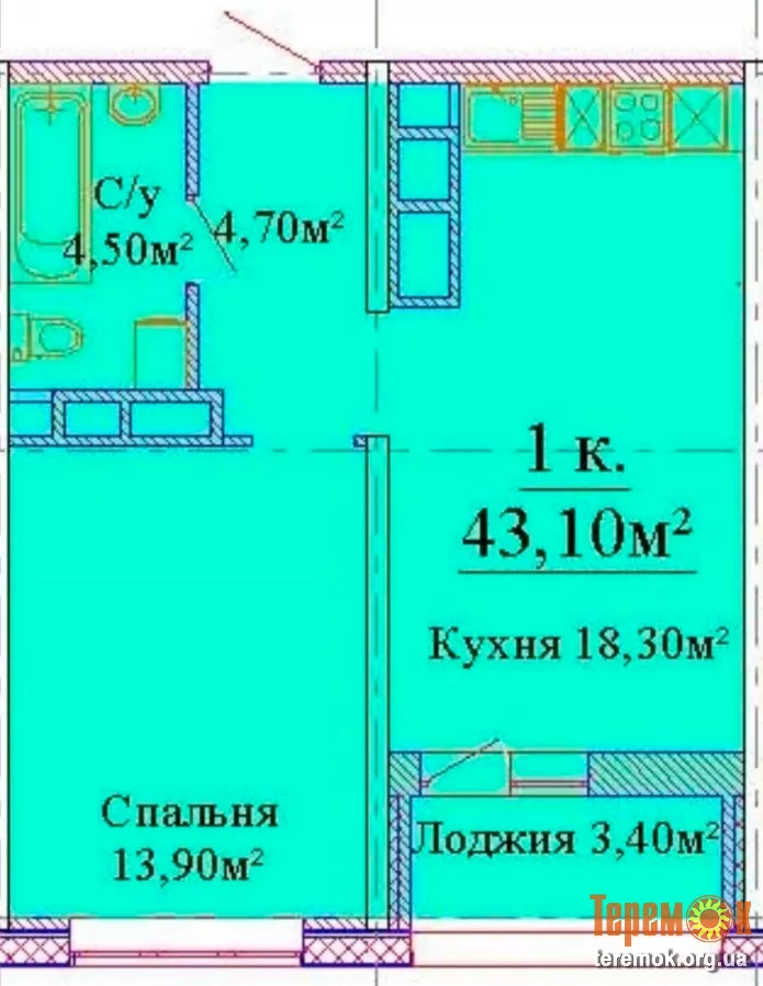 Площею 43м².