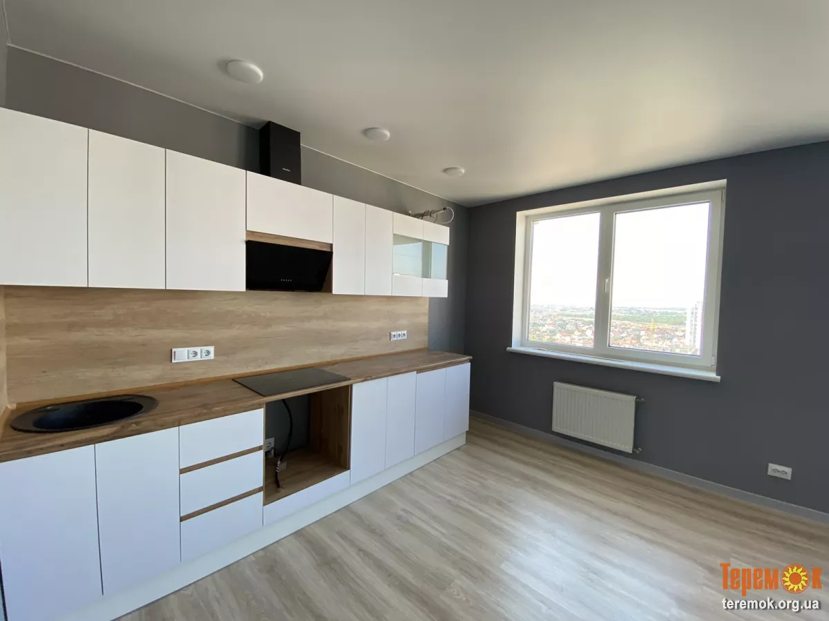 Загальна площа 42 м, кухня простора кухня вітальня, окремо місце під спальню, санвузол суміщений сучасно фанерований.
