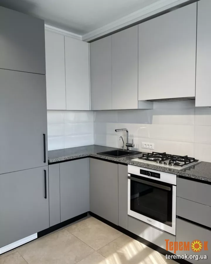 У квартирі зроблено якісний сучасний ремонт. На кухні вбудовані меблі та техніка.