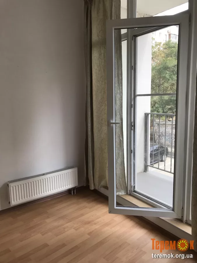 Загальна площа 49 кв.м. із сучасним плануванням: простора кімната 27 кв.м. з еркером і та кухня 9 кв.м. З кімнати вихід на балкон з панорамним склінням.