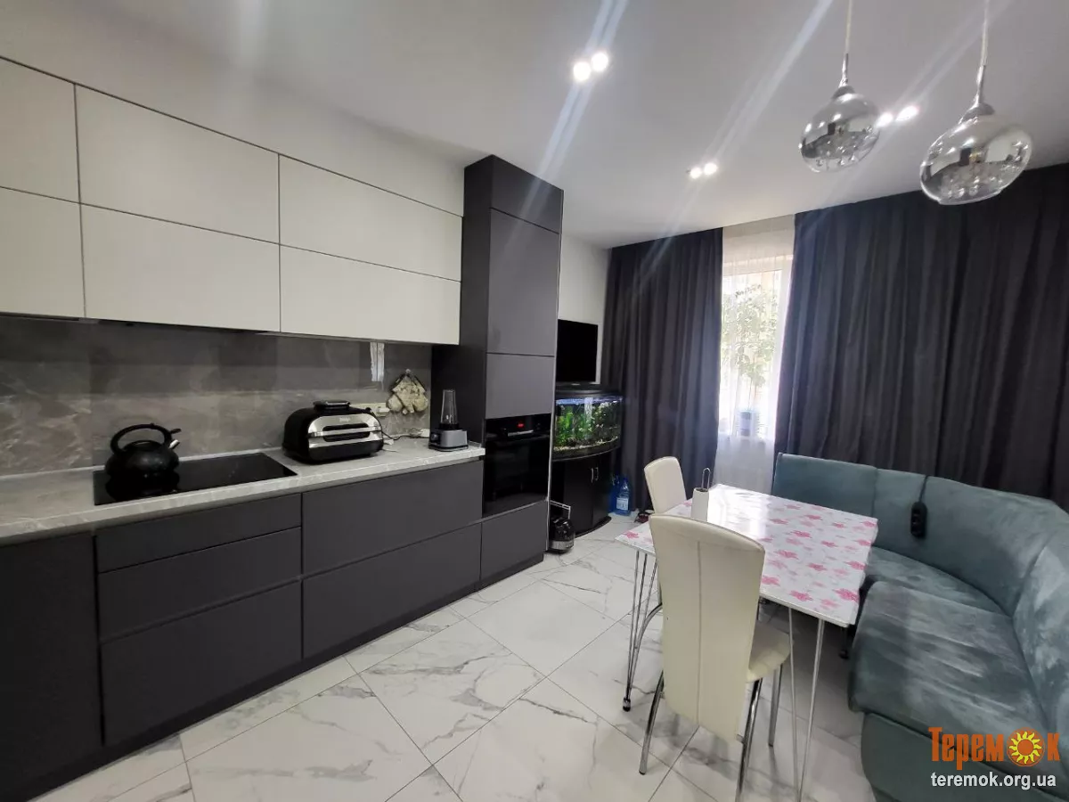 Кухня-вітальня повністю укомплектована меблями та технікою.