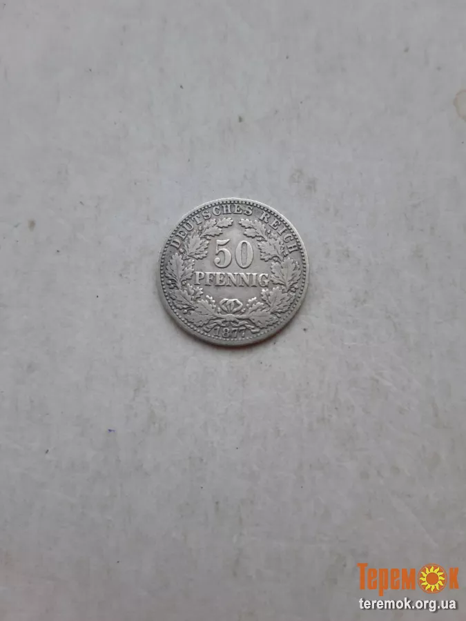 серебряная монета 50 пфеннигов 1877 года , Германия
