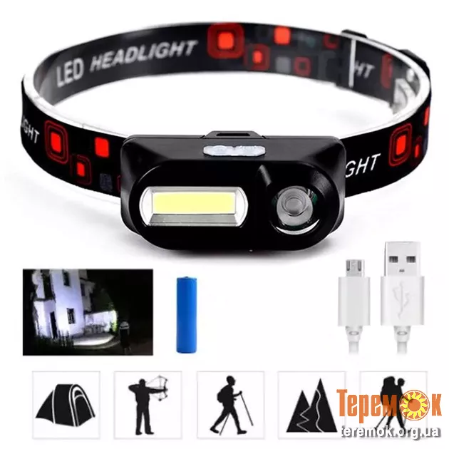 Налобний ліхтарик акумуляторний, світлодіодний ліхтарик налобний