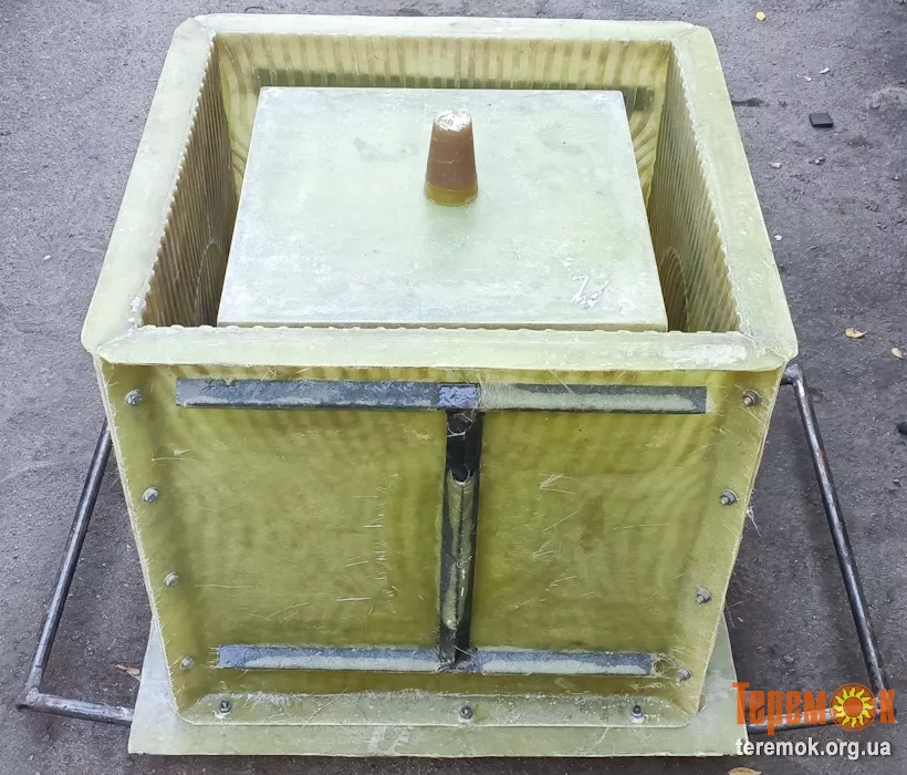 Підготовка форми: Склопластикова форма змащується відповідним мастилом або яким Ви звикли і встановлюєтеся на вібростол, бажано на шматок товстої гуми, так форма прослужить довше.