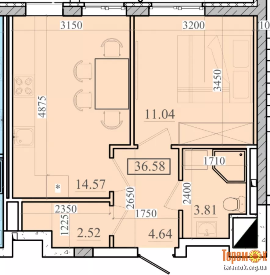 Загальна площа 37м².