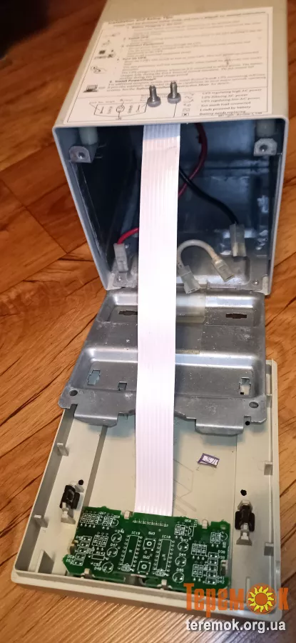 Світлодіодний дисплей зі шкалами навантаження й заряду акумуляторів, а також індикаторами on line (роботи від мережі): on battery (роботи від акумуляторів): replace battery (необхідності заміни акумулятора): і overload (перевантаження) = індикатор режимів on line (роботи від мережі): on battery (роботи від акумуляторів): replace battery (необхідності заміни акумулятора): і overload (перевантаження).