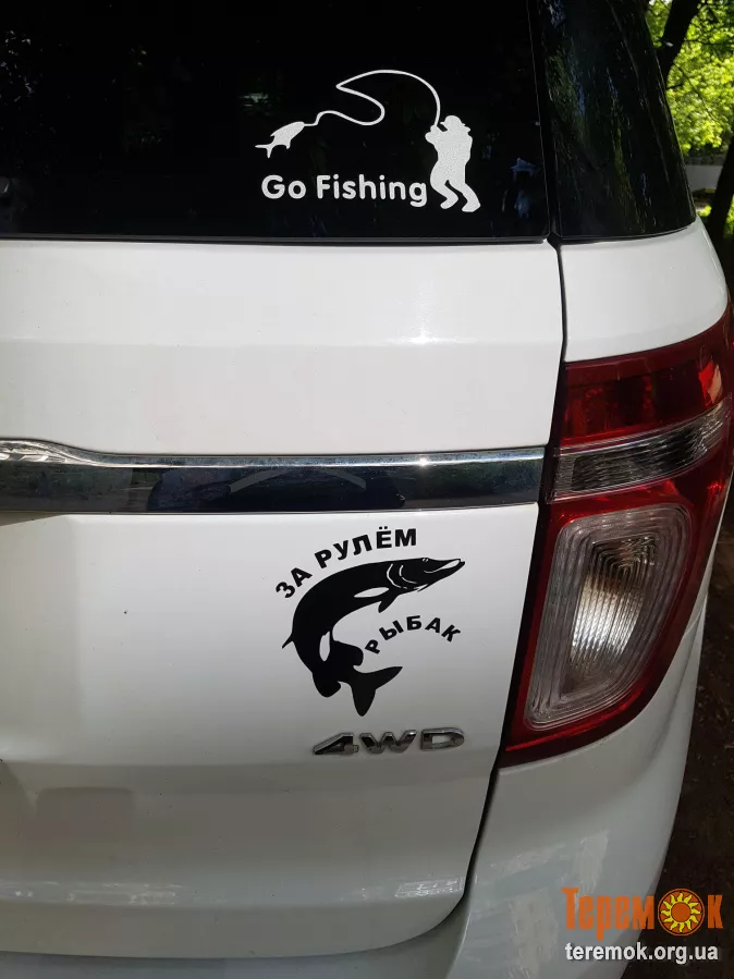 Наклейки на авто на тему рыбалки показывает другим участникам движения что за рулём фанат рыбалки.