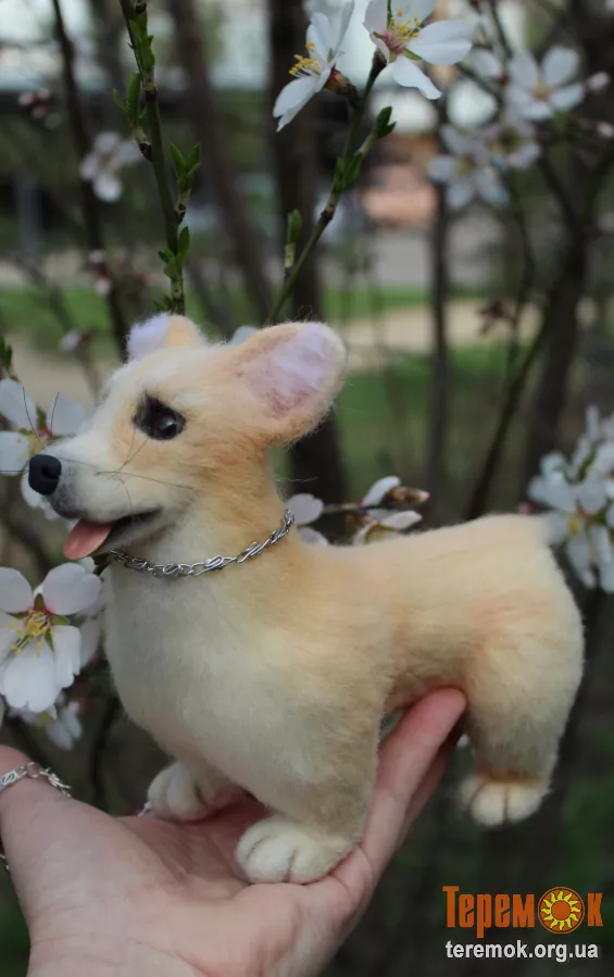 Реалістична собака Коргі валяна іграшка з шерсті. Мабудь сама популярна зараз порода королівська Коргі . Валяна з натуральної овечої шерсті. Висота 15 см, длина 20 см. Зроблена на каркасі, очі скляні ручного розпису, носик та язичок ручної лепки та розпису з fimo, вуса мононіть. Песик душе пухнастий та приємний на дотик- натуральна вовна дає такі відчуття . Коли тримаєш таку іграшку то не хочеться відпускати її таку теплу і наче живу іграшку. І це валяні іграшки. Інтерʼєрна іграшка собака коргі войлочна. Стане чудовим подарунком як дитині так і дорослому. Зроблена з любовʼю та душею. Чекає новий будиночок