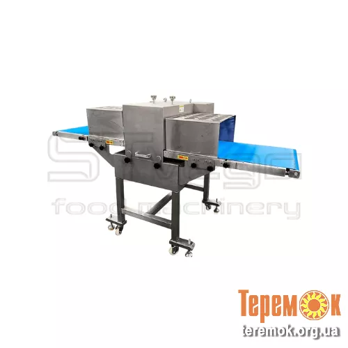 Продукт укладається на конвеєрну стрічку оператором або надходить за допомогою подавального транспортера. Далі по конвеєрній стрічці м'ясо прямує в зону нарізки, де потрапляє під дію горизонтально розташованих дискових ножів і нарізається відповідно до заданих розмірів. Товщина нарізки м'яса залежить від відстані між ножами, розташованими в блоці. Нарізаний продукт потрапляє на конвеєрну стрічку відвідного транспортера і по ній прямує в тару для готової продукції або на подальший етап обробки.