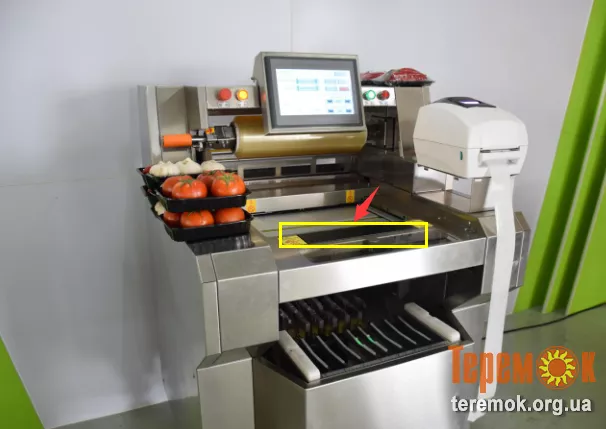 На етикетці вказується вага. Також є гаряча зона для формування плівки після того, як продукт упакований.