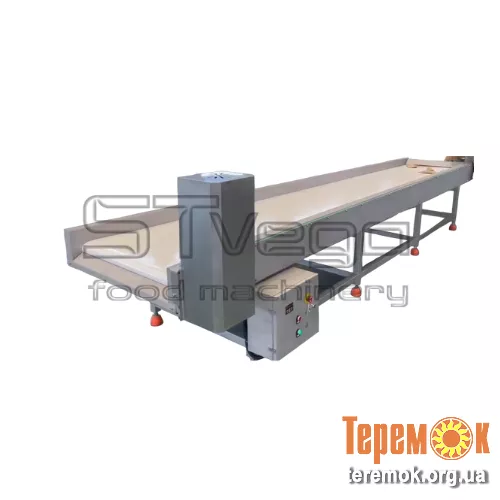 - Конвеєрна стрічка з ПВХ, стійка до вологості та забруднення, легко знімається, очищається і миється.