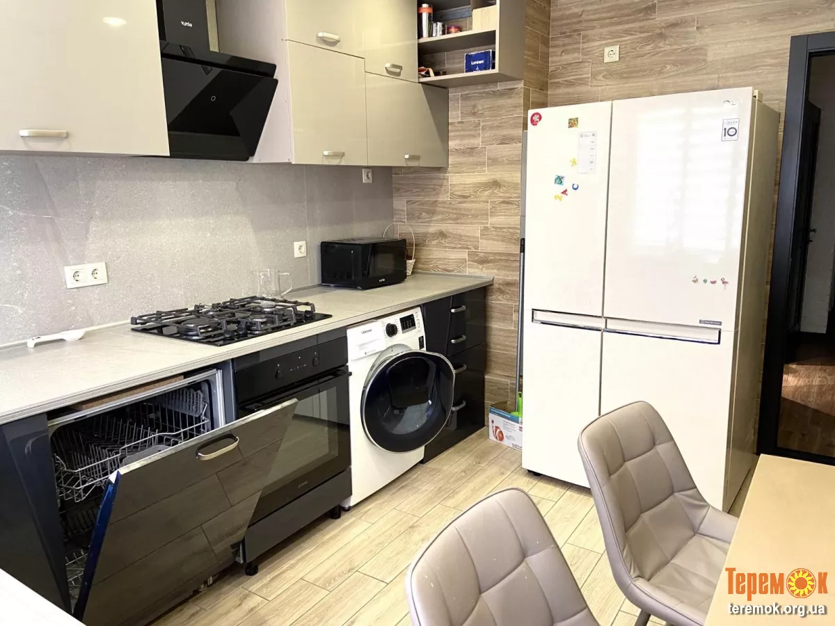 Кухня обладнана дорогою технікою, включаючи двохдверний холодильник з камерою No Frost, прально-сушильну машину, посудомийну машину. Загальний санвузол оснащений дорогою сантехнікою та красивою ванною.