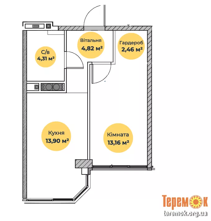 - Площа кухні, м.кв.: 14