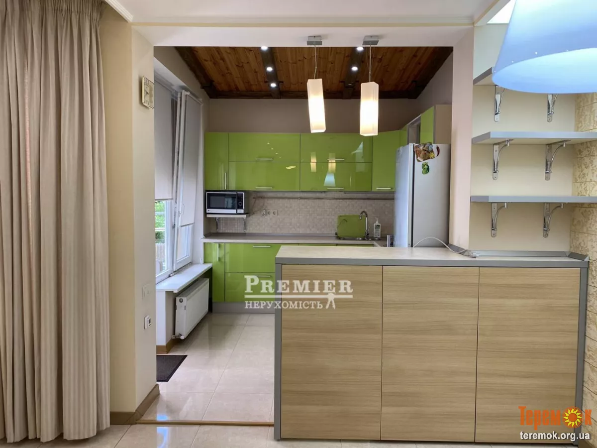Таунхаус загальною площею 100 м2, кухня 12 м2, дві кімнати, вітальня, кабінет. Два санвузли. Вихід на терасу.