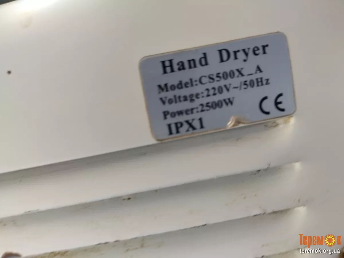 Сушилка для рук: Solaris Чистая планета, Hand Dryer, Model: CS500K- A, антивандальная система защиты, автомат, мощность 2 500 Вт. Б/У.