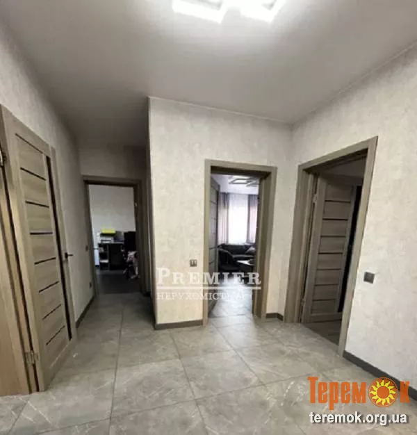 На першому поверсі три кімнати, кухня з вбудованими меблями та технікою, ванна кімната та туалет, хол.