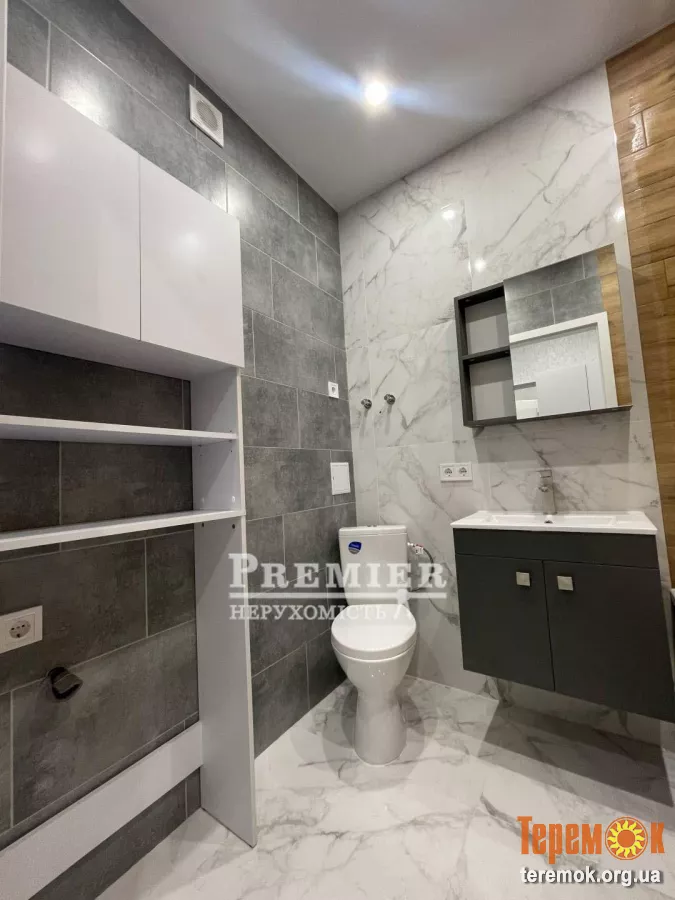 Санвузол поєднаний, фанерований сучасною плиткою та душовою системою.