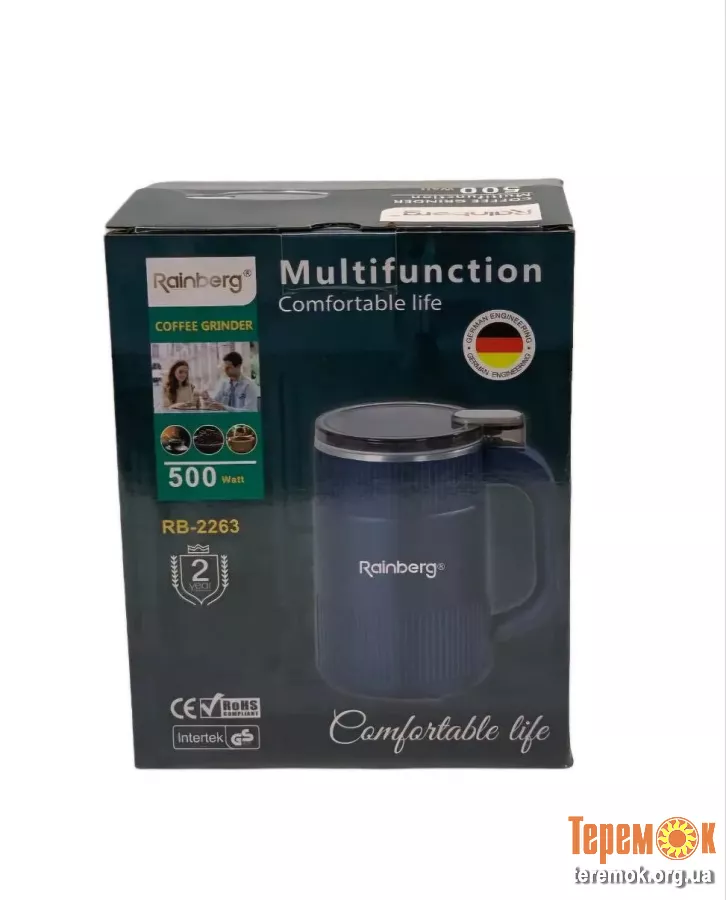 Электрокофемолка Rainberg RB-2263 мощная 500 W измельчает кофейные зерна, орехи, семена, а также крупы в муку.