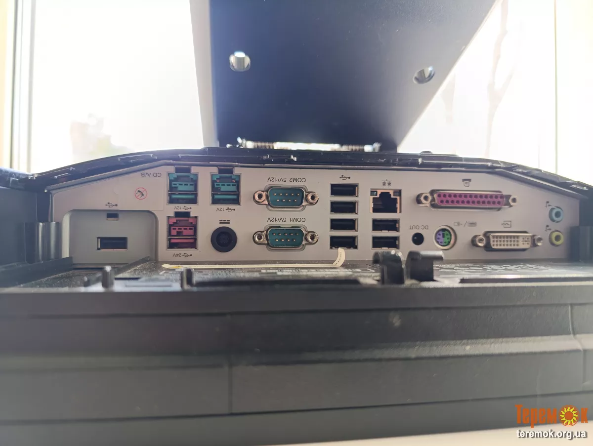 Порти: 1 порт USB+PWR 24В, 1 порт PS/2, 1 аудіовхід, 1 аудіовихід, 1 DC-вхід, 1 DC-вихід, 1 порт DVI-I, 1 паралельний порт, 1 роз'єм RJ-12 (грошова скринька), 1 роз'єм RJ-45, 2 порти USB+PWR 12 В, 2 роз'єми RS-232 (з живленням), 7 роз'ємів USB 2.0
