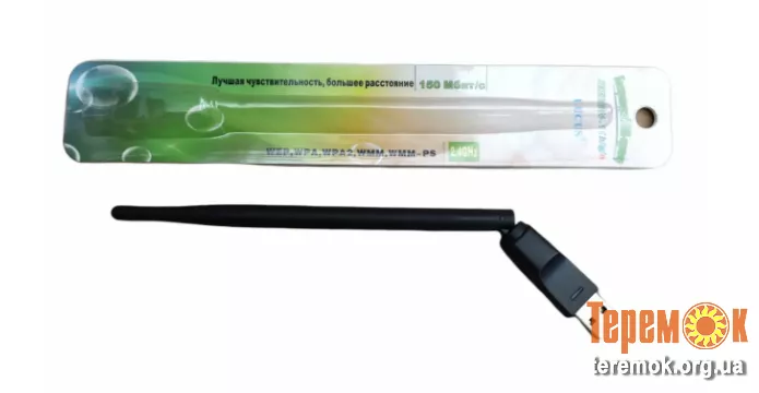 Wi-Fi адаптер призначений для під'єднання ресивера до бездротових Wi-Fi мереж для роботи мережевих застосунків у мережах Ethernet та ІНТЕРНЕТ. Підходить для роботи з ресиверами: Alphabox x5, Alma 2200, Amiko 8100 Series, Amiko 8200Series, Amiko Mini, Amiko SHD8900, Amiko Alien 2, Dreambox 500HD, Dreambox 800HD, Dreambox 800Se, Fulan+, Galax Innovation S2081, Gaxaly Internationve 2138, Gax Innovatione 2238, Galaxy Innovatione 6638, Galaxy Innovatione Mini, Galaxy Innovation Matrix, Galaxy Innovation Matrix2, Golden Media 990, Golden Media Reload, Golden Media One, Golden Media Wizard, Golden Media Wizard Class, Openbox S4pro+, Orton x405HD, Orton x406HD, Satintegral Aron 1210, Satintegral Rocket 1223, Satintegral Nero 1211, Satintegral Stealth 1221, Satintegral Stealth 1222, Skyprime HD, Skyprime HD mini, тощо. Чип: Ralink RT7601 Основні технічні характеристики: тип зовнішня стандарт Wi-Fi 802.11b/802.11g/802.11n USB інтерфейс режими Station, Soft Ap, Wi-Fe direct швидкість передавання даних 150 Мбт діапазон робочих частот 2,4 ГГц підтримка операційних систем linux, Windowss 7/8/xp/Vista, MAC OS X конфігурація безпеки WEP, WPA, WPA2, WAPI коефіцієнт посилення 2 ДБ