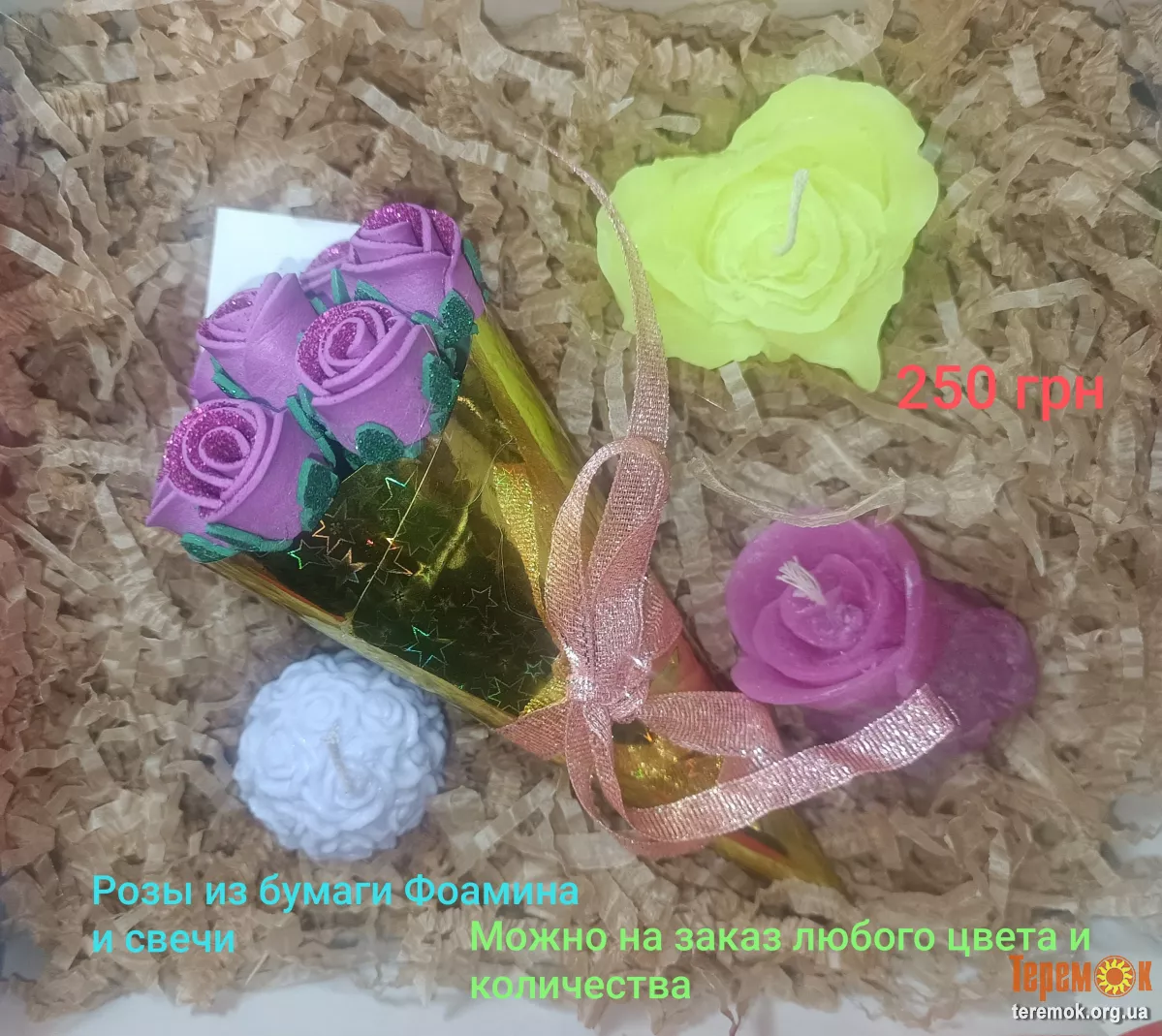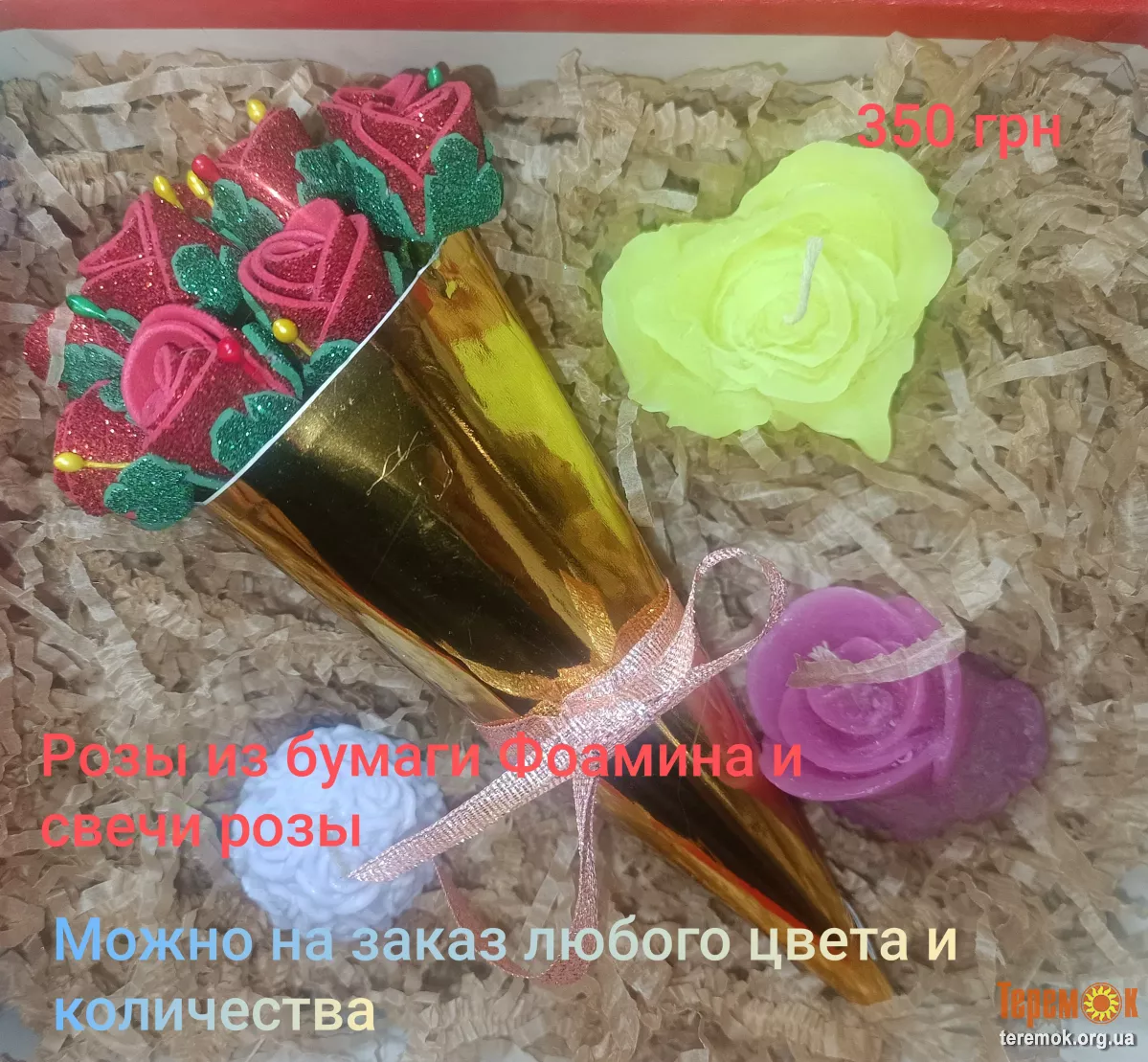 Розы из бумаги Фоамина.Можно на заказ любого цвета и количества как розы так и свечи