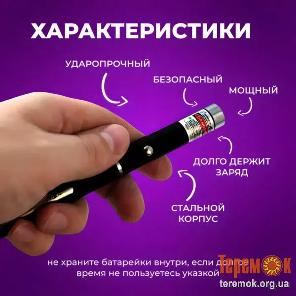 УВАГА! Цей лазер небезпечний для очей! Пряме влучення лазера в око неприпустимо.