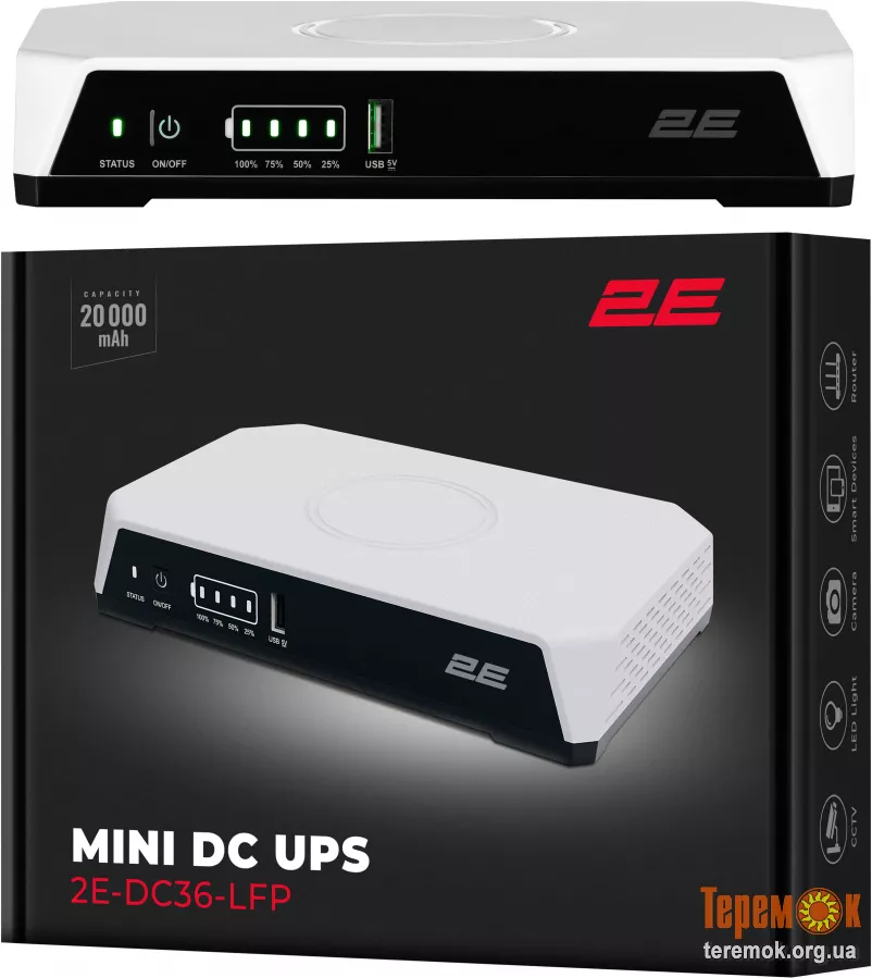 Джерело безперебійного живлення 2E Mini DC 36 Вт LFP - компактне та надійне рішення для резервного живлення цифрових пристроїв: роутерів, IP-камер,