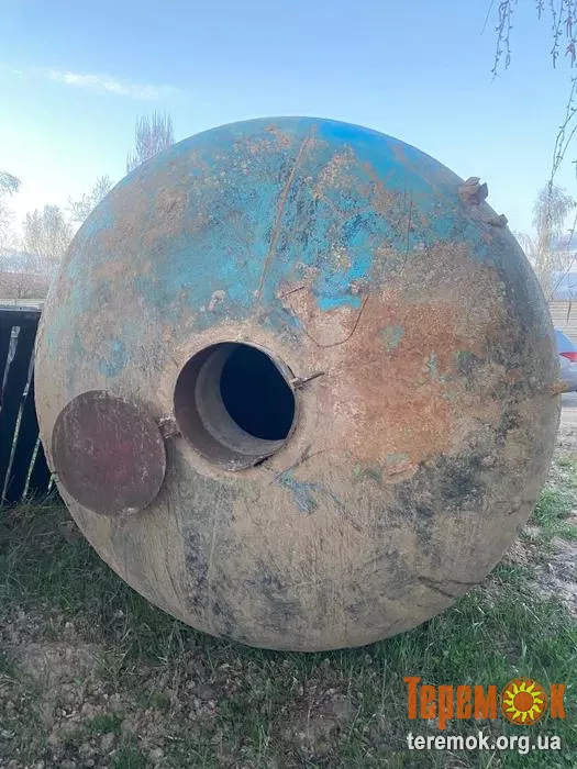 Эмалированная бочка 20 куб. Диаметр 2.70, длина 4.40 Вертикальная, на лапах. Стенка около 10.