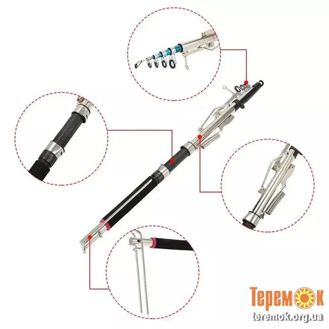 Телескопічний спінінг у зборі з механізмом автопідсікання. Все, що вам залишається – вивудити трофей з водоймища після спрацювання механізму. Має незнімний утримувач. Закріплення вудлища в землю здійснюється за допомогою металевих кілочків, закріплених на комелі. Вудлище телескопічного типу, завдяки чому дуже компактне під час транспортування. Має стандартний гвинтовий котушкотримач та зручний м’який комель.