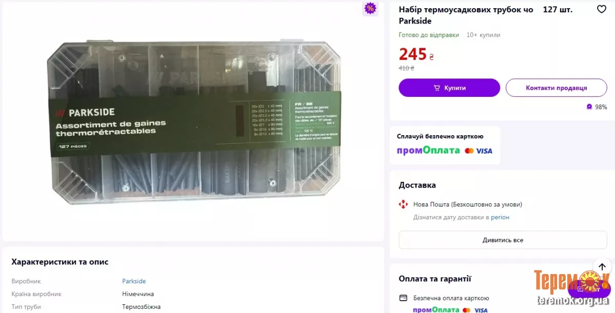 Набір термоусадок 127 шт Parkside в пластиковому кейсі