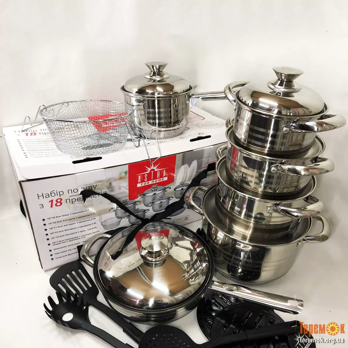 Набір посуду 18 предметів ASTRA , каструлі з нержавіючої сталі, каструлі з кришками